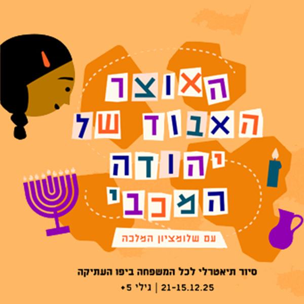 סיור תיאטרלי למשפחות וילדיםסיור משפחתי בעקבות החנוכייה והאוצר האבוד של יהודה המכבי עם שלומציון המלכה - הרפתקה קסומה המשלבת מיתולוגיה, אמונה וסיפורי חג החנוכה, ופותחת חלון ייחודי אל ימי התקופה החשמונאית.בסיור תיאטרלי, קומי וסוחף בין סמטאות יפו העתיקה, נגלה יחד שרידים וסיפורים שלא נחשפו מעולם – ונהפוך את ההיסטוריה לחוויה...