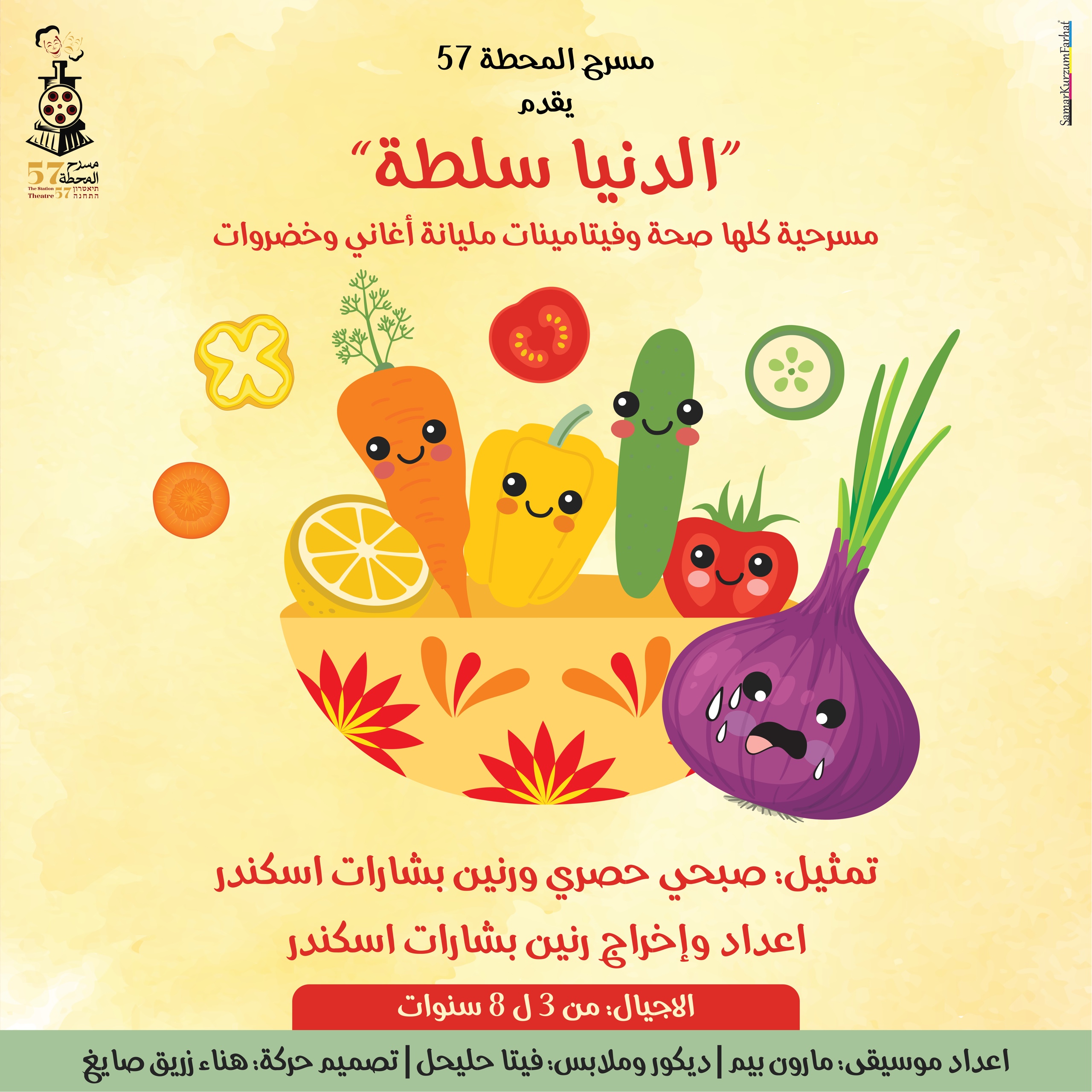 الدنيا سلطة(العربية) عرض مليء بالصحة والفيتامينات ،اغاني وخضروات!يستمتع الأطفال قصة مثيرة من خلال الخضروات اللذيذة والمليئة بالحياة،ويطرح مواضيع الاختلاف والتنوع. كيف يمكن أن ترفض الخضروات وملكتها البندورة انضمام البصل إلى السلطة،فقط بسبب رائحته وطعمه؟وهل سينجح البصل في أن يجعل الخضروات أصدقاء له،ويجد مكانه في وعاء السلطة؟ تعالوا لنكتشف معًا...