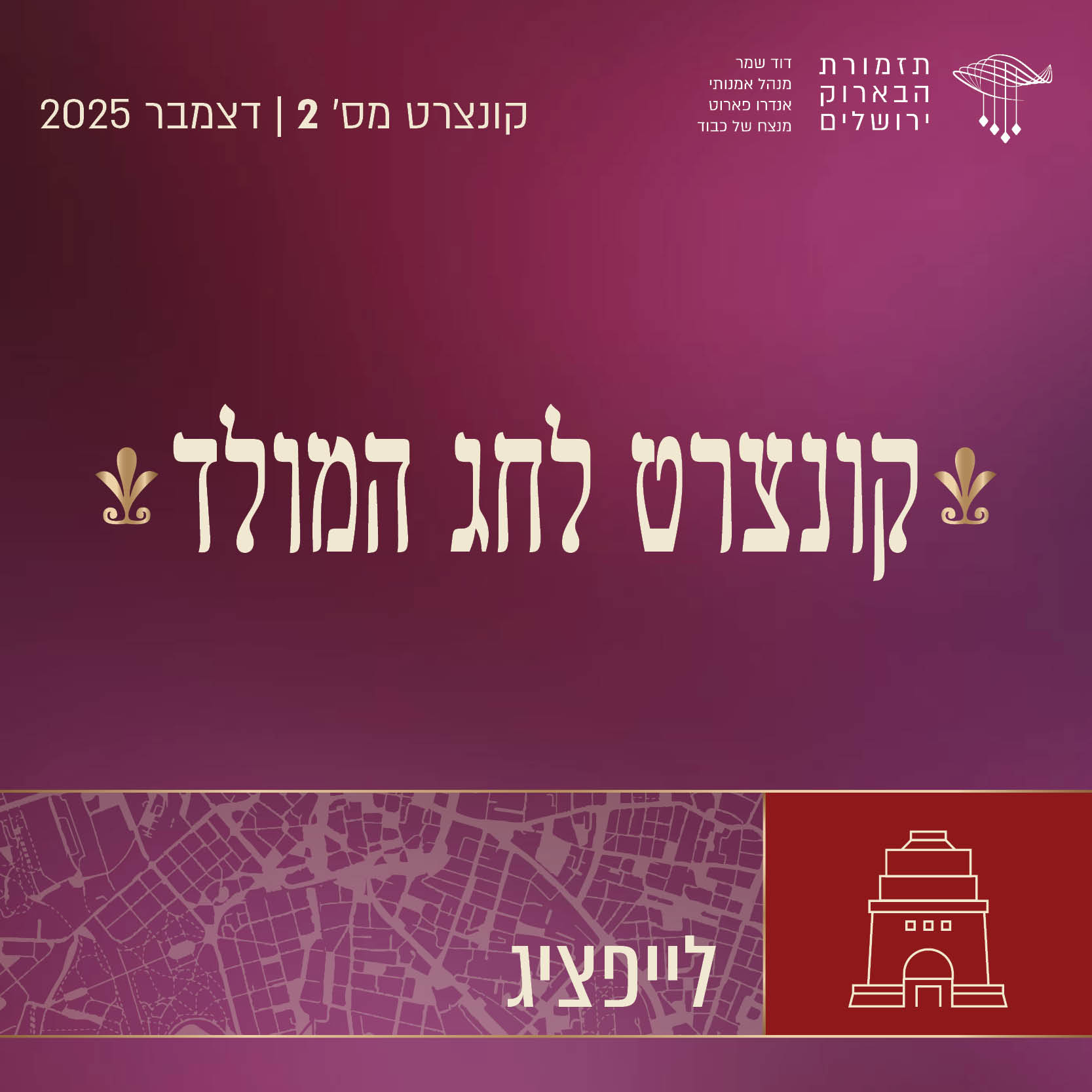 תזמורת הבארוק ירושלים שמחה להציג את חגיגות העשורלפסטיבל באך 17-25 במרץ, 2026 שריינו כבר עתה את מקומותיכם לקונצרט המרכזי בפסטיבל. התכנית המלאה לקונצרט המרכזי ולפסטיבל כולו תתפרסם בתחילת ספטמבר