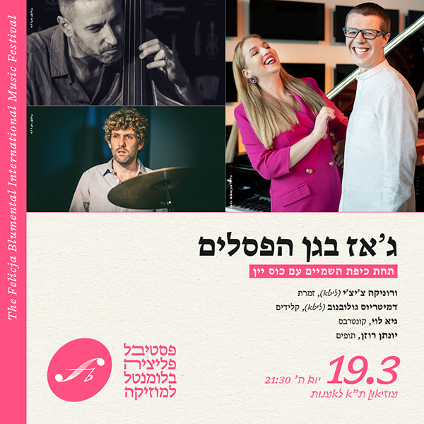 תחת כיפת השמיים עם כוס ייןורוניקה צ'יצ'י (ליטא), זמרת | דמיטריוס גולובנוב (ליטא), קלידים גיא לוי, קונטרבס | יונתן רוזן, תופיםארבעה אמני ג'אז בינלאומיים חוברים לראשונה למופע תחת כיפת השמיים בגן הפסלים של המוזיאון, המאפשר דיאלוג מיידי בינם לבין הקהל, האוויר העירוני, הכוכבים והמרחב האינסופי. בשיתוף עם המכון התרבות הליטאי*הכרטיס...