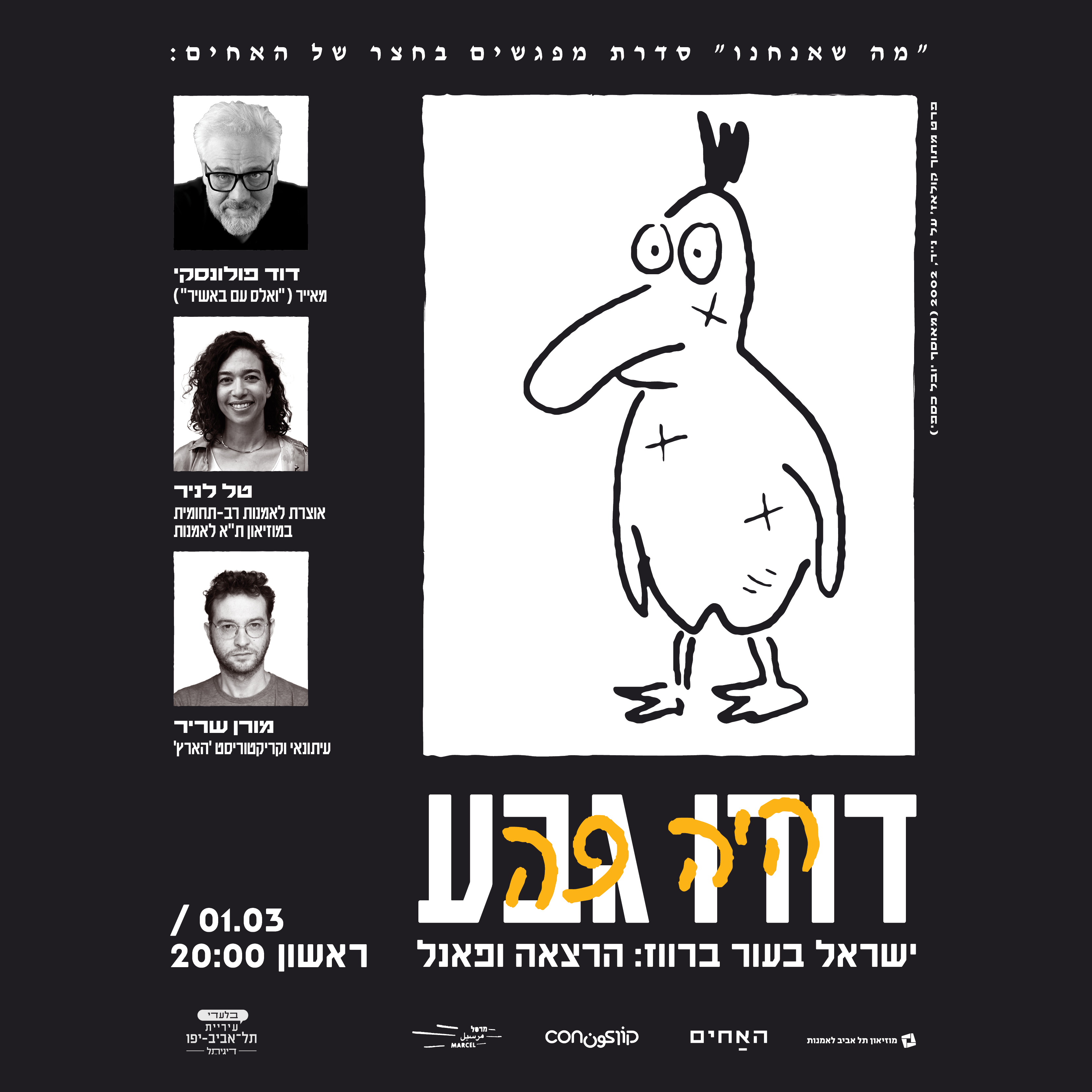 טל לניר - אוצרת לאמנות רב-תחומית במוזיאון תל אביב לאמנות, דוד פולונסקי - מאייר ("ואלס עם באשיר", "אגדת חורבן"), מורן שריר - עיתונאי וקריקטוריסט 'הארץ'. העבודות של דודו גבע הן מן הביטויים המזוהים והנוקבים ביותר של הישראליות כפי שהתעצבה משנות השבעים ואילך — לא כייצוג הרואי או אידיאולוגי, אלא כאצבע...