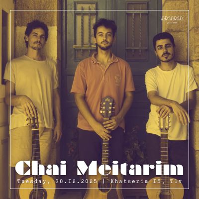 Album Launch Concert • World Premiere!Chai Meitarim is an original project created by Omri Porat, Yehonatan Alloro Levi, and Omri Bar Giora —three guitarist friends from high school, each with a distinct musical voice and a rich, personal playing style.Their meeting sparks a fertile musical dialogue between styles from across...