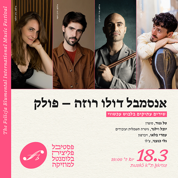 שירים עתיקים בלבוש עכשוויטל גנור, סופרן | יובל וילנר, גיטרה חשמלית ועיבודים | עמרי בלאו, ויברפון | גלי כנעני, צ'לודולו רוזה הוא הרכב חוצה ז׳אנרים, תקופות וגבולות סגנוניים, שהוקם על ידי הזמרת טל גנור והגיטריסטיובל וילנר. ההרכב מציע פרשנות עכשווית ומקורית לרפרטואר רחב, החל ממוזיקה מתקופת הבארוק ועדלמוזיקה פופולרית, בעיבודים...