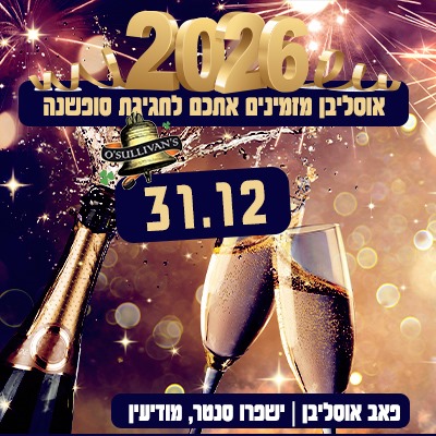 שנה חדשה בפתח, ואנחנו רוצים לחגוג אותה אתכם! אנו מזמינים אתכם להצטרף אלינו לערב קסום ויוקרתי, חגיגה קולינרית ומוזיקלית, לרגל כניסת השנה האזרחית החדשה. תאריך: יום רביעי, 31 בדצמבר 2025. שעת הגעה ותחילת הארוחה: 20:30. מיקום: אוסליבן מודיעין (O'Sullivan's), שדרות המלאכות 121.הערב יכלול חוויה קולינרית עשירה ומפוארת ברוח הבית:מנות ראשונות:...