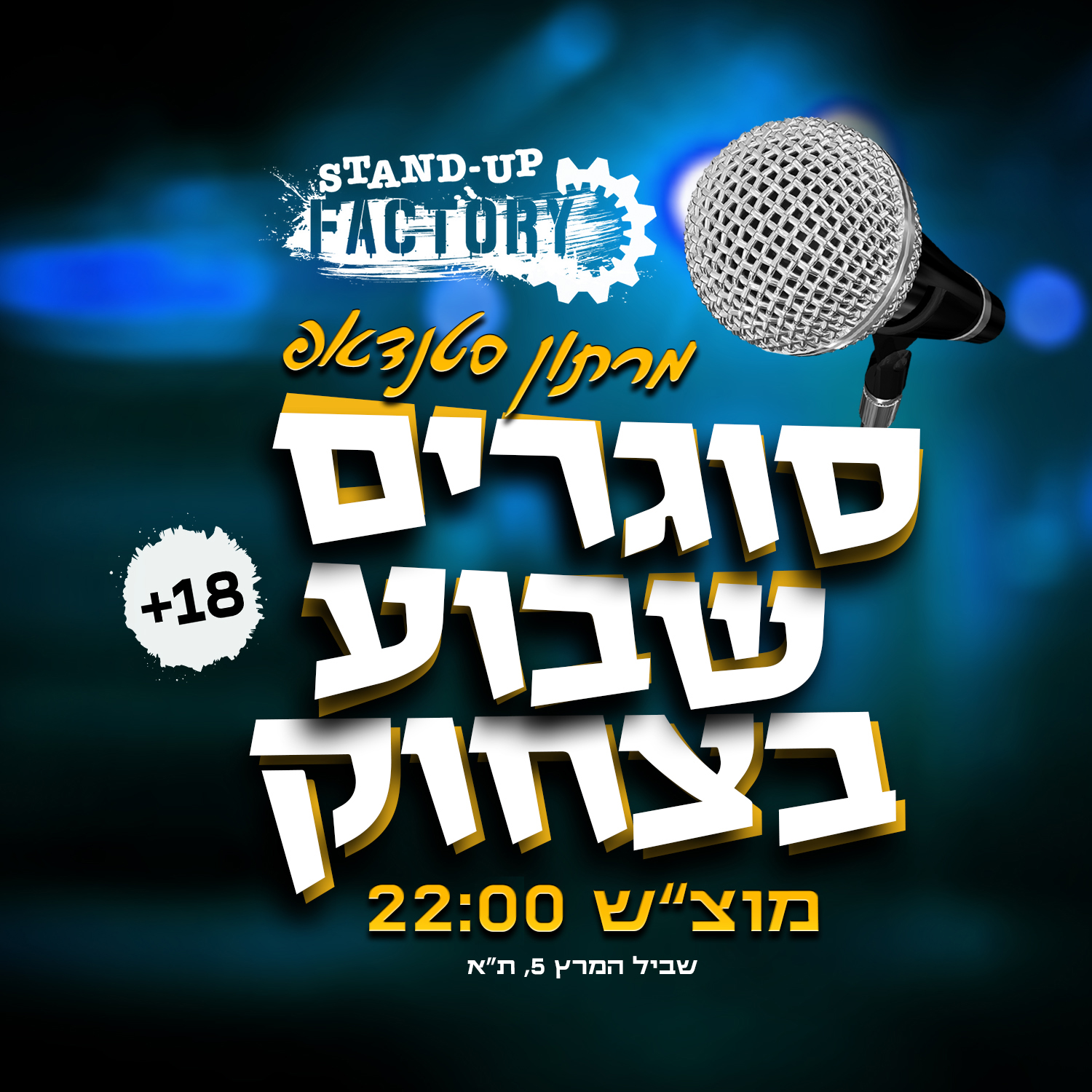 *הכניסה מגיל 18 סוגרים שבוע ומתחילים שבוע חדש בצחוק עם מרתון סטנדאפ מטורף בסטנד-אפ פקטורי. מועדון הסטנדאפ של תל אביב, עם ההופעות הכי טובות והאמנים הכי מצחיקים! אם בא לך מופע סטנדאפ בלי גבולות ובלי צנזורה, על כוס בירה, סטנד-אפ פקטורי זה המקום בשבילך. בין אמני הבית שלנו : אסף...