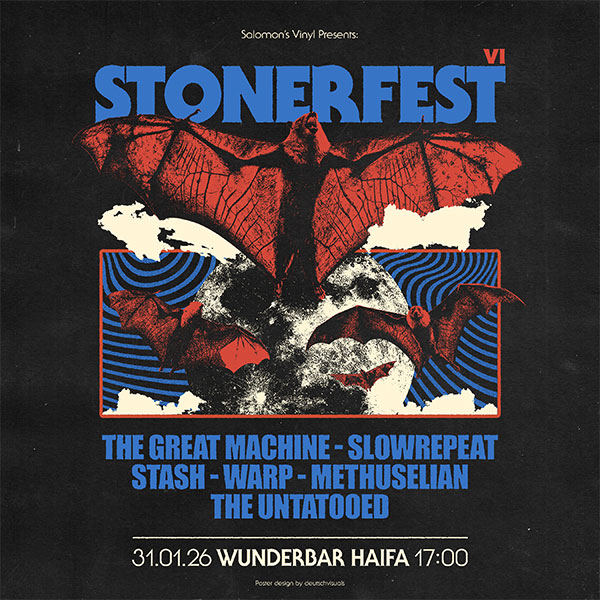פסטיבל הסטונר הישראל שהפך למסורתחוזר למוסד החיפאי "וונדרבר" בפעם השישית!רועש יותר ומרגש יותר שש להקות על במה אחת The Great Machine ☆ Stash ☆ Slowrepeat ☆ Warp ☆ Methuselian ☆ The Untatooed דוכני תקליטים, מרצ'נדייז ואמנות ️ואתם הלב שלנו נתאחד כולנו לאירוע הרוקנרול של השנה ביום שבת, 31.1.26 בשעות בין הערביים