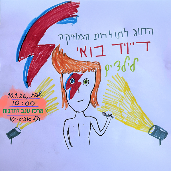 דיוויד בואי - מהחלל ועד בכלל! למה איש אחד, יחיד ומיוחד צריך כל כך הרבה זהויות? האם הוא אדם, זיקית או בכלל חייזר? ואיך עכבישים ממאדים קשורים למייג'ור טום? חבורת החוג לתולדות המוזיקה חוזרת למרכז ענב לציון עשור ללכתו של גדול הדור,עם מפגש מוזיקלי חכם, מבדר ומותאם לילדים, של הרצאה...